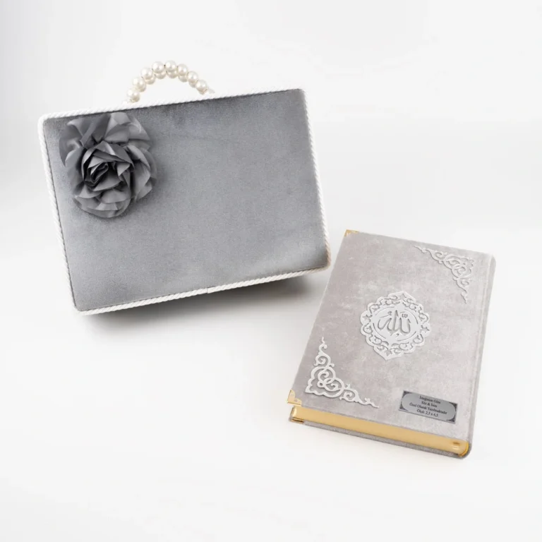 İnci Çantalı Çeyizlik Kuranı Kerim (Orta Boy, Gri)