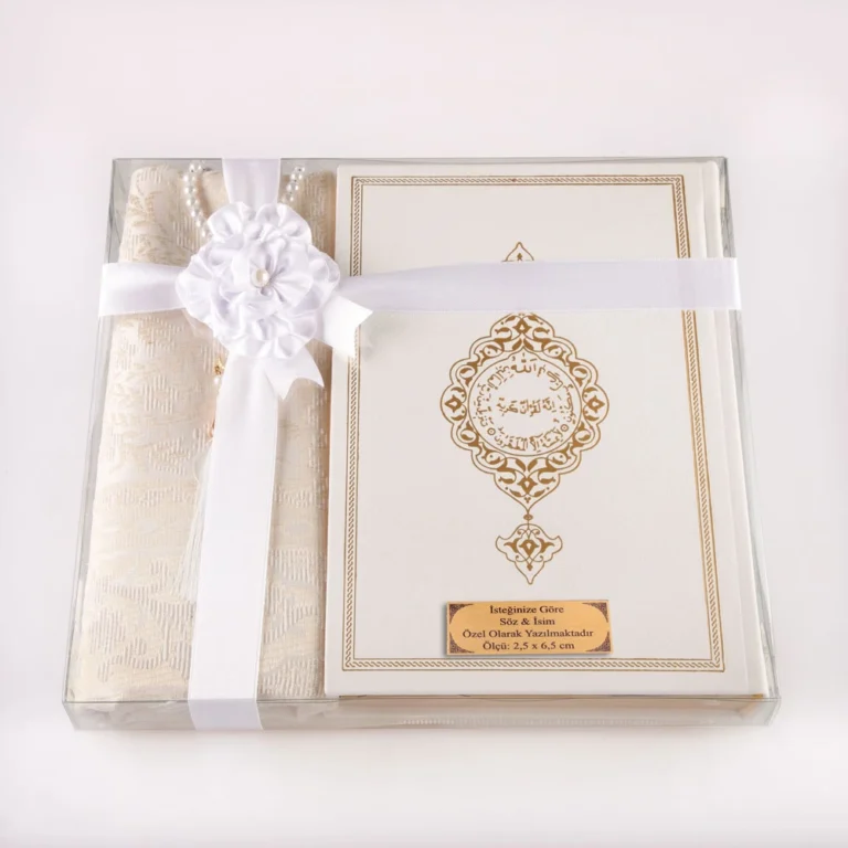 Kadınlara Özel Hediyelik Kuran-ı Kerim Seti, Seccade + Tesbih (Termo Deri, Orta Boy, Beyaz)