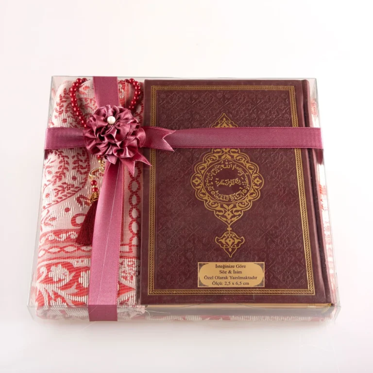 Kadınlara Özel Hediyelik Kuran-ı Kerim Seti, Seccade + Tesbih (Termo Deri, Orta Boy, Bordo)