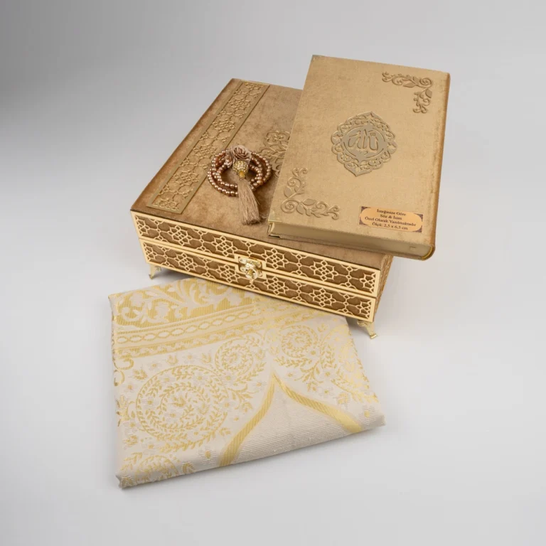 Erkeklere Özel Çeyiz & Bohça Hediye Seti – 4 Parça (Kuran, Seccade, Tesbih, Orta Boy, Gold)