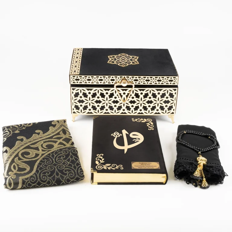 Erkeklere Özel Çeyiz & Bohça Hediye Seti – 4 Parça (Kuran, Seccade, Tesbih, Orta Boy, Gold)