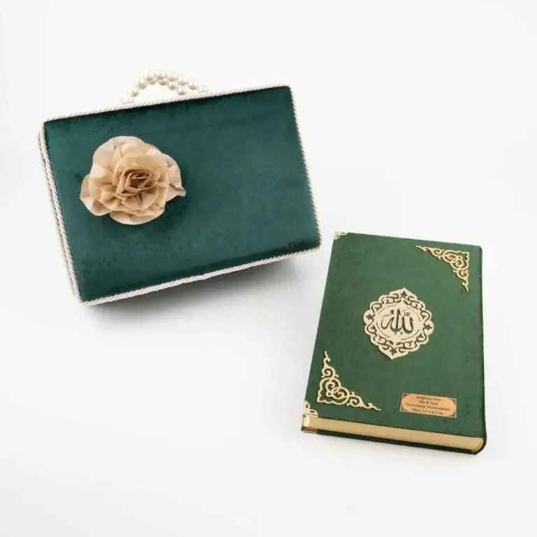 İnci Çantalı Çeyizlik Kuranı Kerim (Orta Boy, Yeşil)