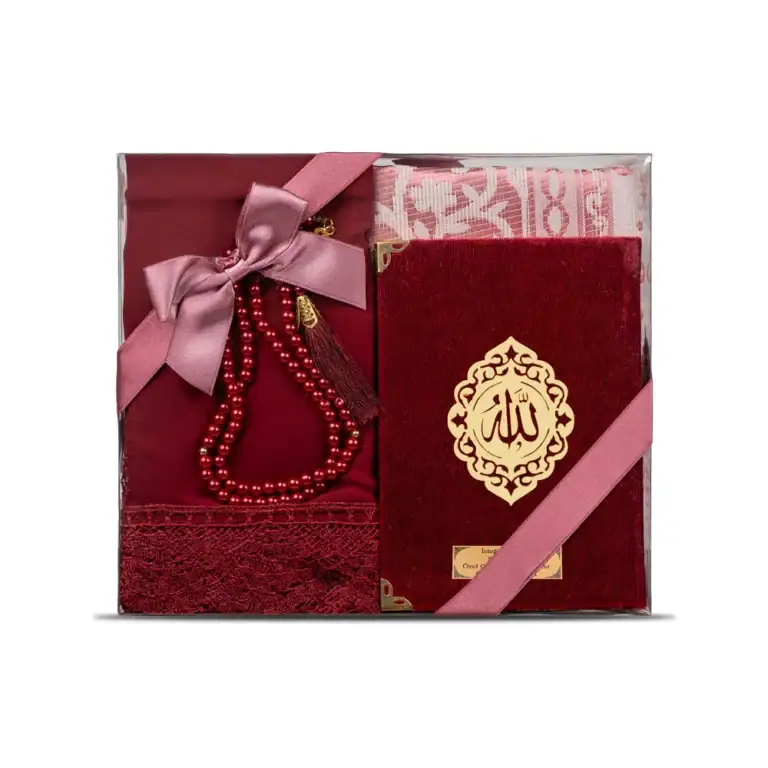 Yasin + Seccade + Tesbih + Şal Hediye Seti (Çanta Boy, Şems Lafzatullah, Bordo)
