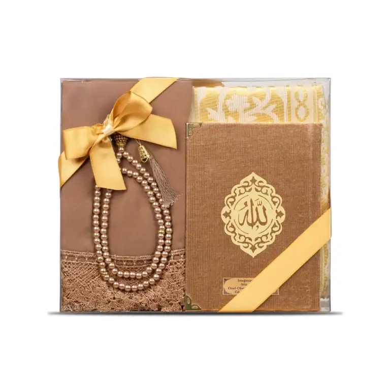 Yasin + Seccade + Tesbih + Şal Hediye Seti (Çanta Boy, Şems Lafzatullah, Gold)