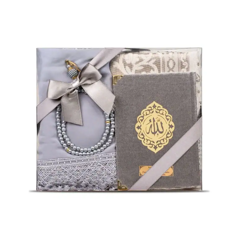 Yasin + Seccade + Tesbih + Şal Hediye Seti (Çanta Boy, Şems Lafzatullah, Gri)