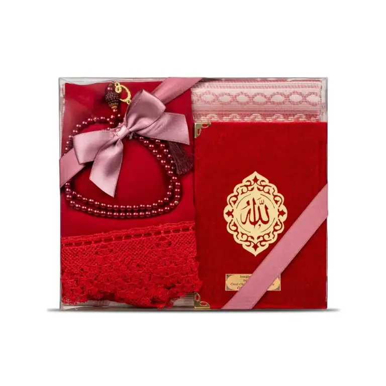 Yasin + Seccade + Tesbih + Şal Hediye Seti (Çanta Boy, Şems Lafzatullah, Kırmızı)