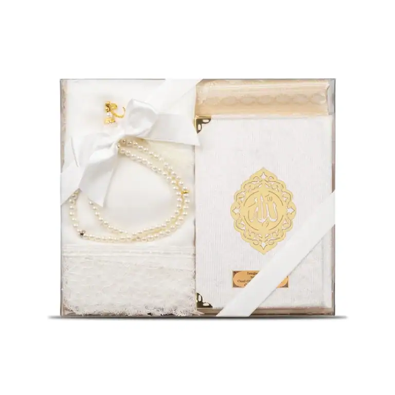 Yasin + Seccade + Tesbih + Şal Hediye Seti (Çanta Boy, Şems Lafzatullah, Krem)