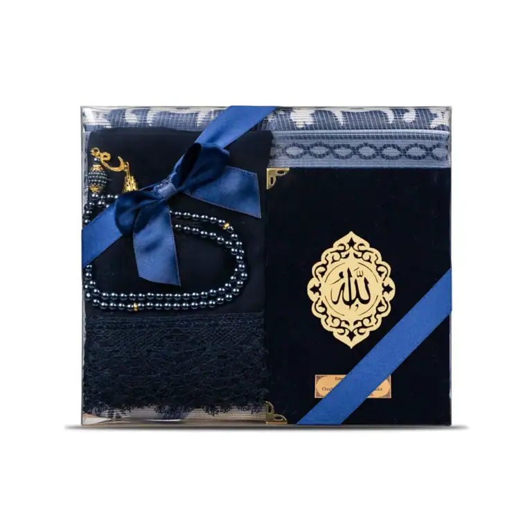 Yasin + Seccade + Tesbih + Şal Hediye Seti (Çanta Boy, Şems Lafzatullah, Lacivert)