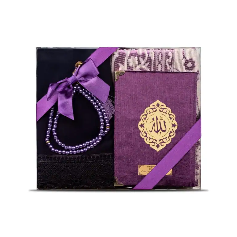 Yasin + Seccade + Tesbih + Şal Hediye Seti (Çanta Boy, Şems Lafzatullah, Mor)