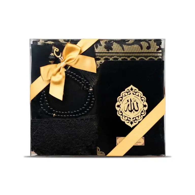 Yasin + Seccade + Tesbih + Şal Hediye Seti (Çanta Boy, Şems Lafzatullah, Siyah)