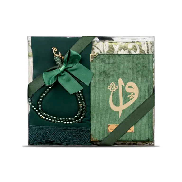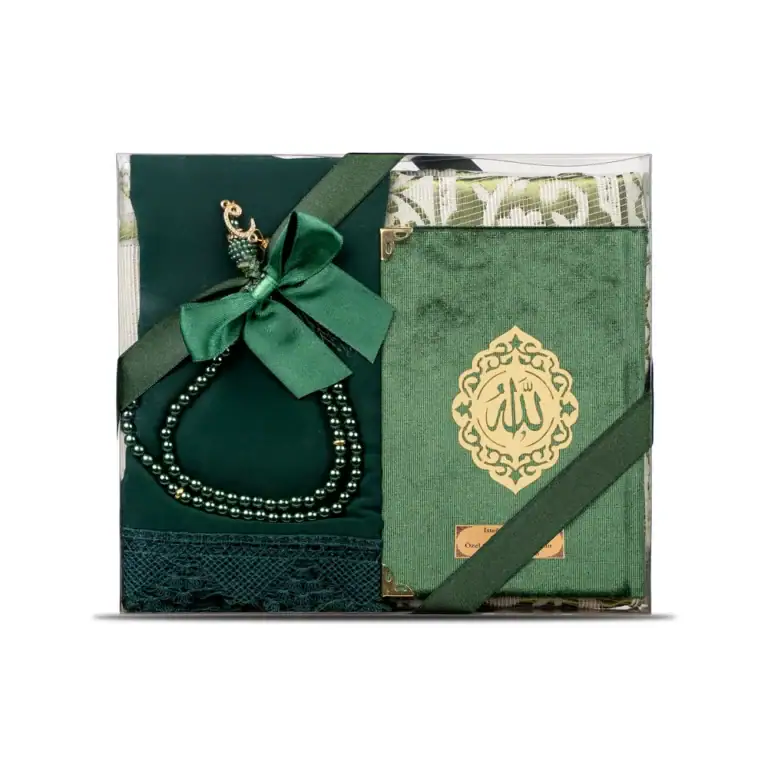 Yasin + Seccade + Tesbih + Şal Hediye Seti (Çanta Boy, Elif Vav, Yeşil)