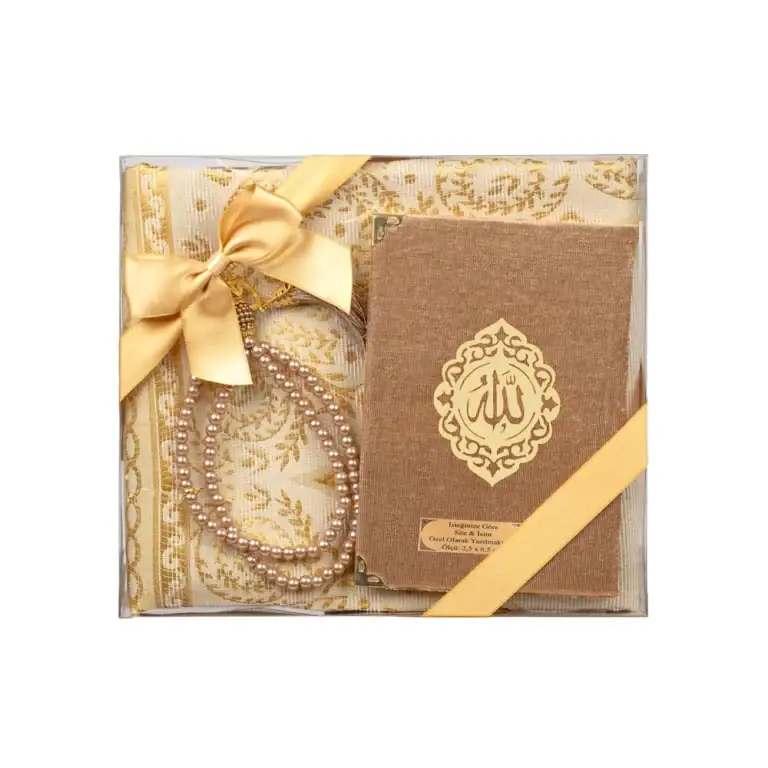 Yasin + Seccade + Tesbih Hediye Seti (Çanta Boy, Şems Lafzatullah, Gold)