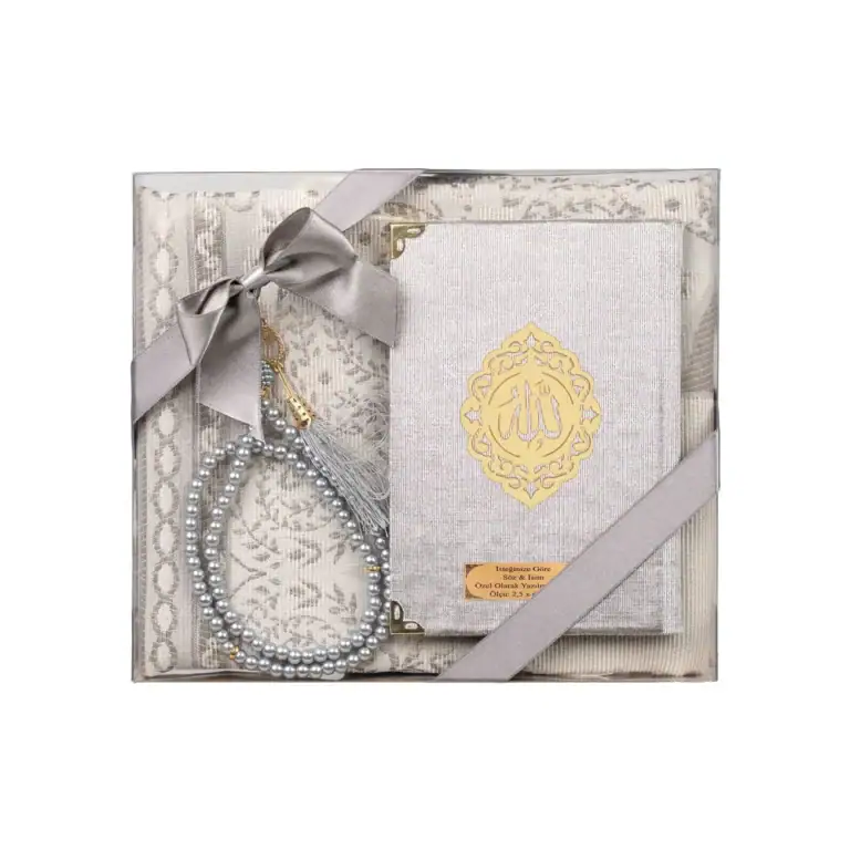 Yasin + Seccade + Tesbih Hediye Seti (Çanta Boy, Şems Lafzatullah, Gri)