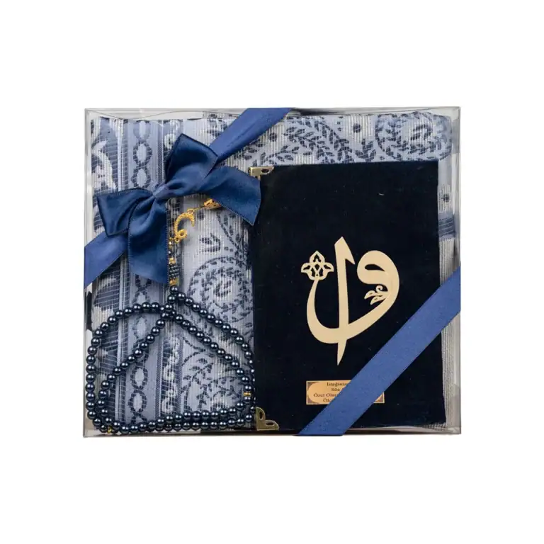 Yasin + Seccade + Tesbih Hediye Seti (Çanta Boy, Elif Vav, Lacivert)
