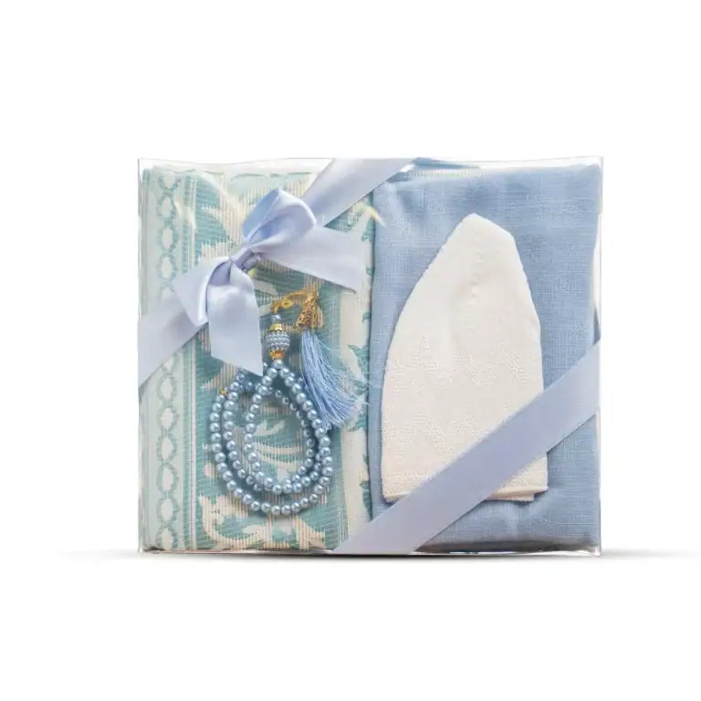 Seccade + Eşarp + Takke + Tesbih Hediye Seti (Asetat Kutulu, Mavi)