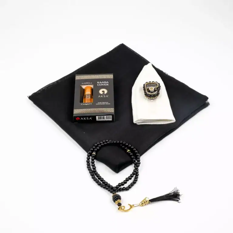 Eşarp + Takke + Esans + Tesbih + Zikirmatik Hediye Seti (Asetat Kutulu, Siyah)