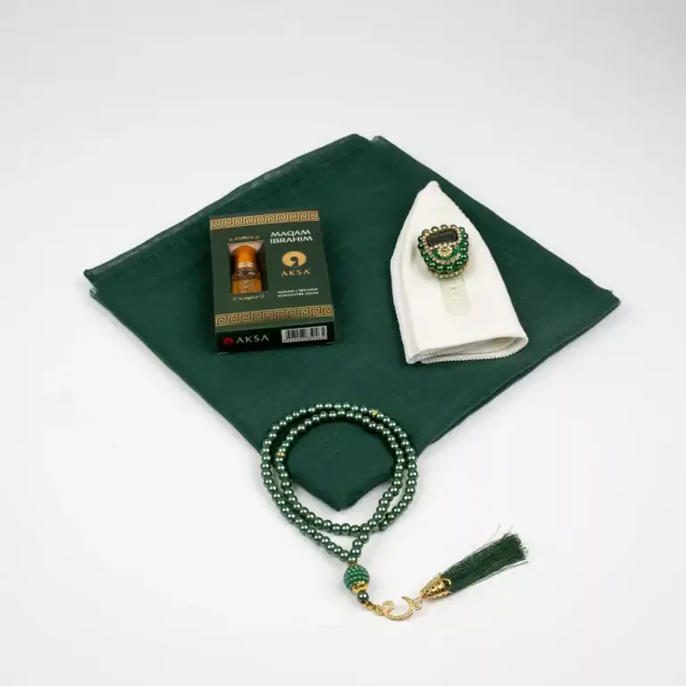 Eşarp + Takke + Esans + Tesbih + Zikirmatik Hediye Seti (Asetat Kutulu, Yeşil)