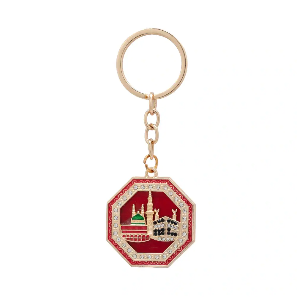 Anahtarlık – Kabe & Medine Motif Sekizgen Model (Bordo)