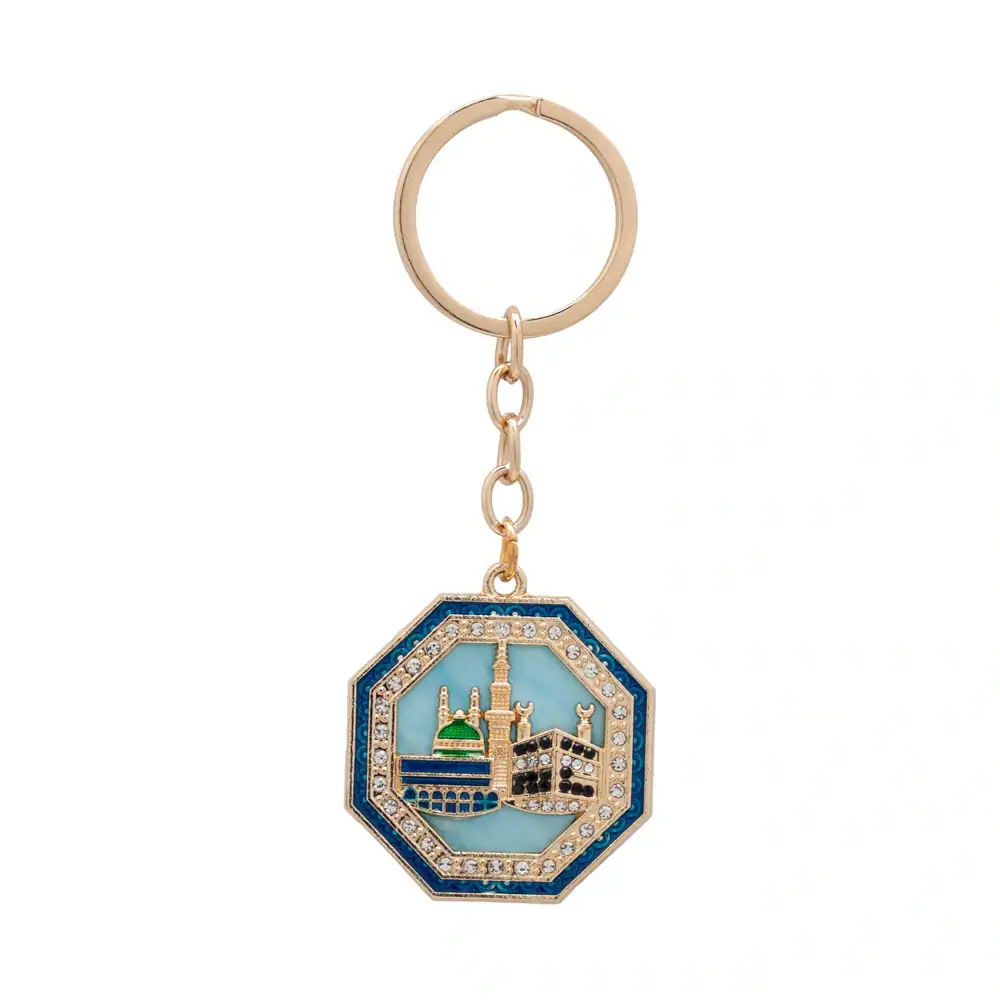 Anahtarlık – Kabe & Medine Motif Sekizgen Model (Lacivert)