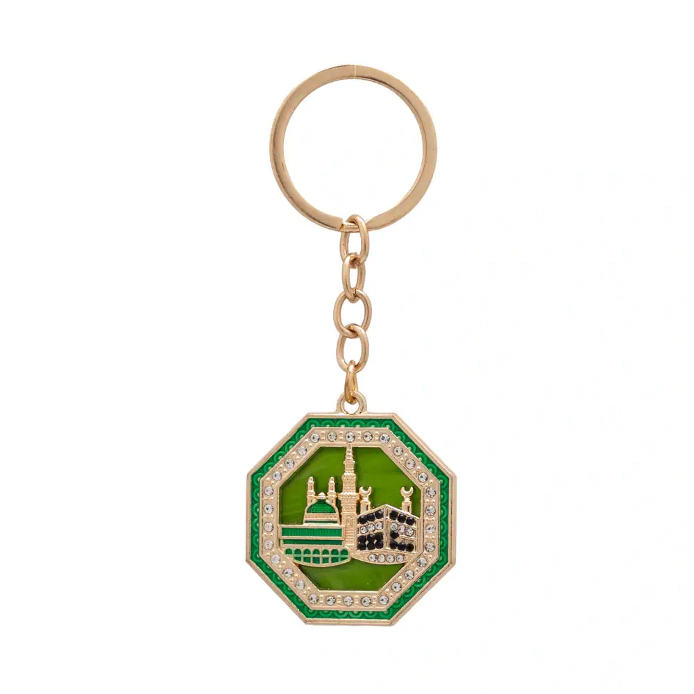 Anahtarlık – Kabe & Medine Motif Sekizgen Model (Yeşil)
