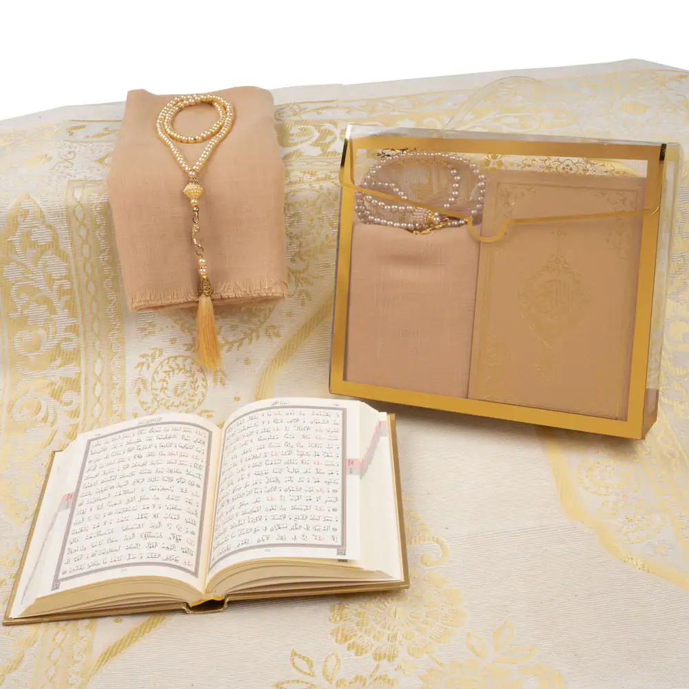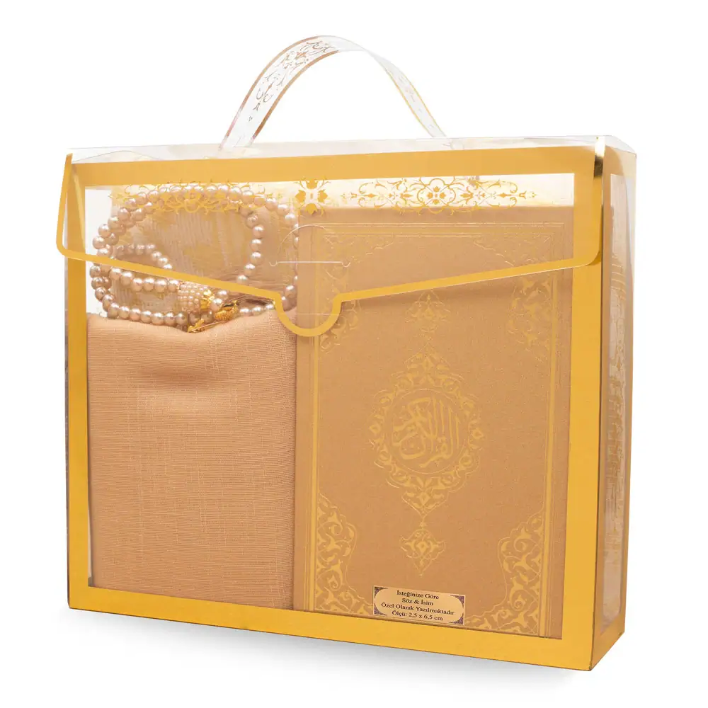 Çantalı Kuran Hediye Seti + Seccade + Eşarp + Tesbih (Çanta Boy, Gold)