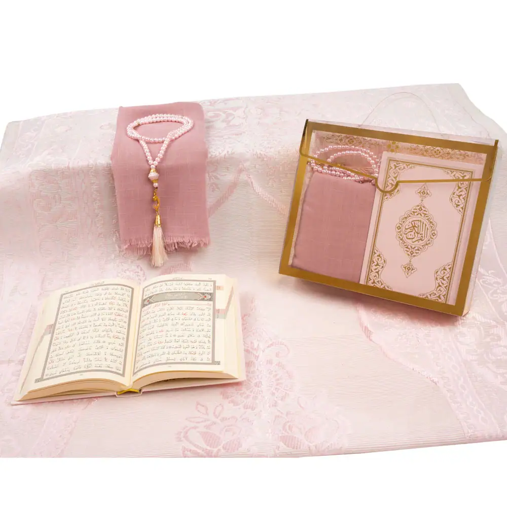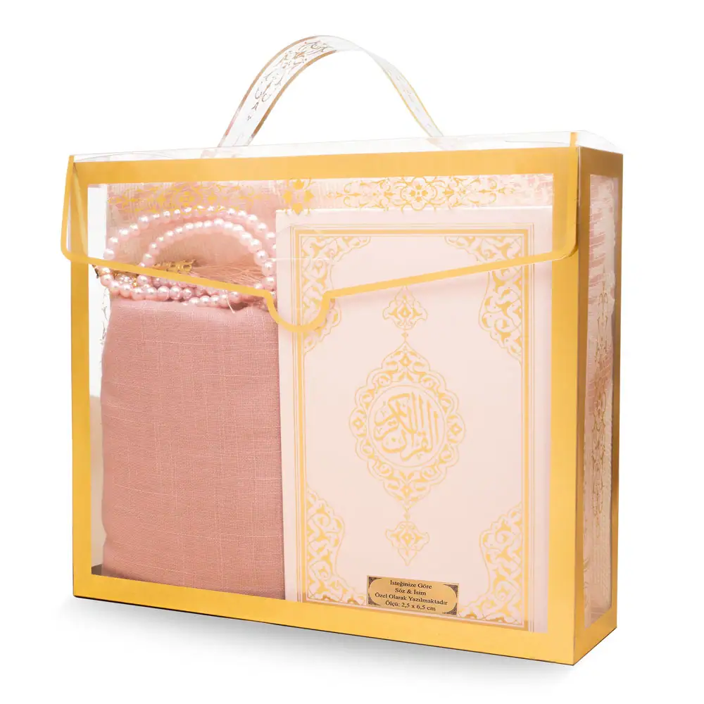 Çantalı Kuran Hediye Seti + Seccade + Eşarp + Tesbih (Çanta Boy, Pembe)