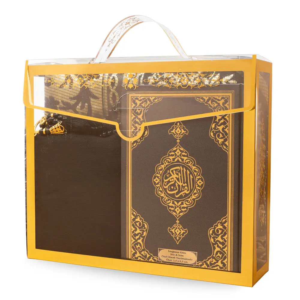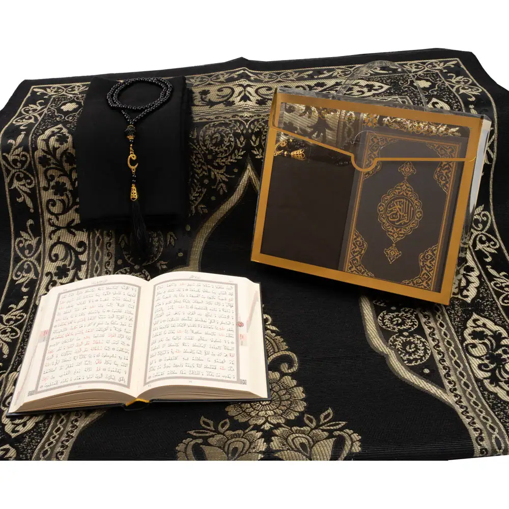 Çantalı Kuran Hediye Seti + Seccade + Eşarp + Tesbih (Çanta Boy, Siyah)