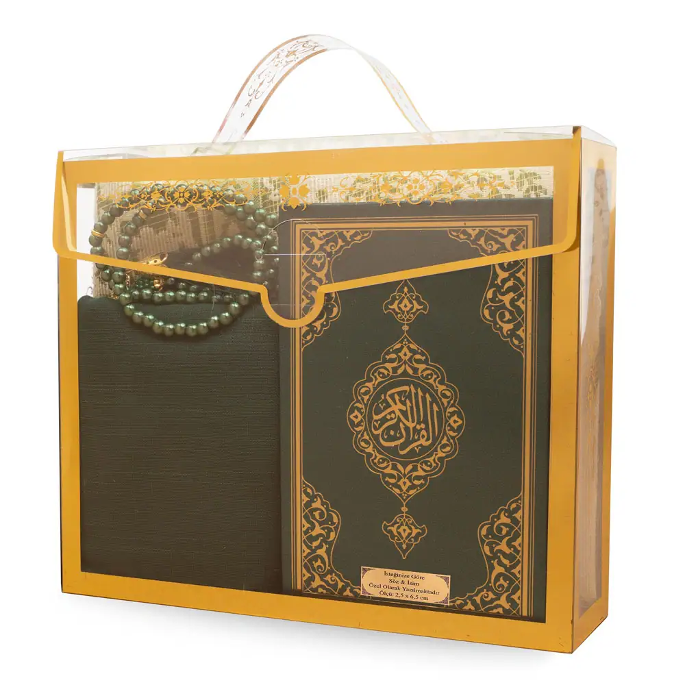 Çantalı Kuran Hediye Seti + Seccade + Eşarp + Tesbih (Çanta Boy, Yeşil)