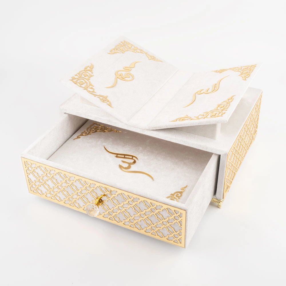 Çekmeceli Rahleli Kur’an-ı Kerim (Orta Boy, Divan Lafzatullah, Krem)