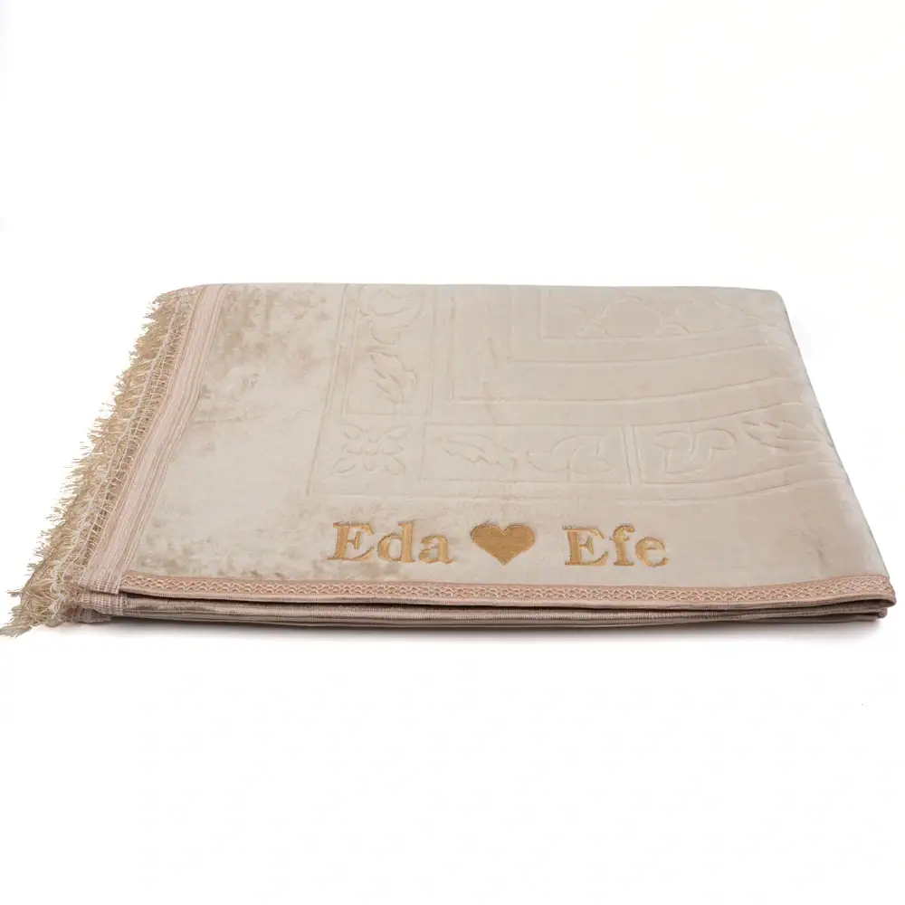 Çiftlere Özel Hediyelik İsimli Peluş Seccade (Krem)