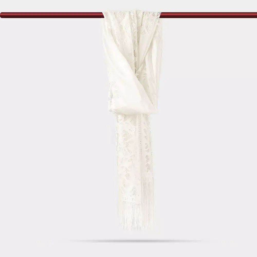 Dantelli Püsküllü Şal (Mevlid Örtüsü, 166×61 cm. Krem)