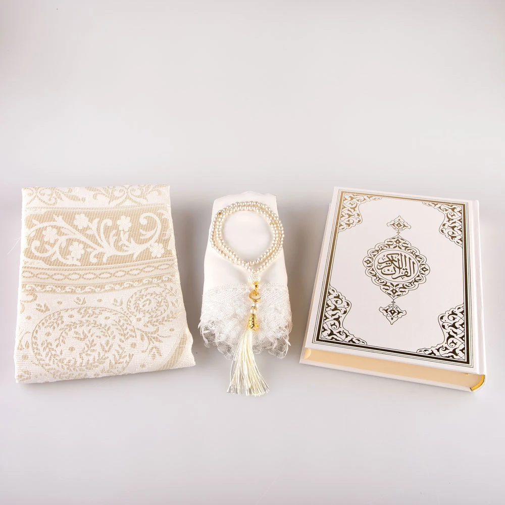 Hediyelik 4 Parça Kuran Seti, Şal + Seccade + Tesbih (Orta Boy, Ekonomik Cilt, Beyaz)