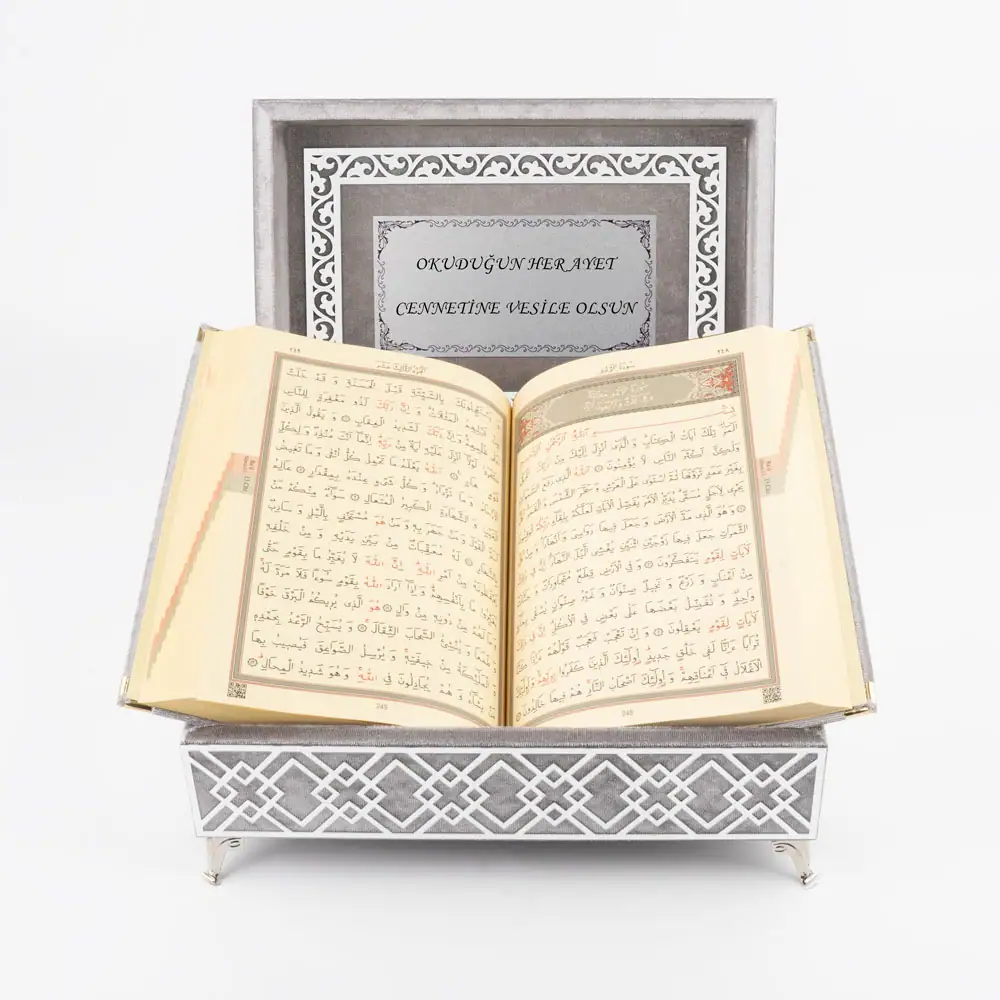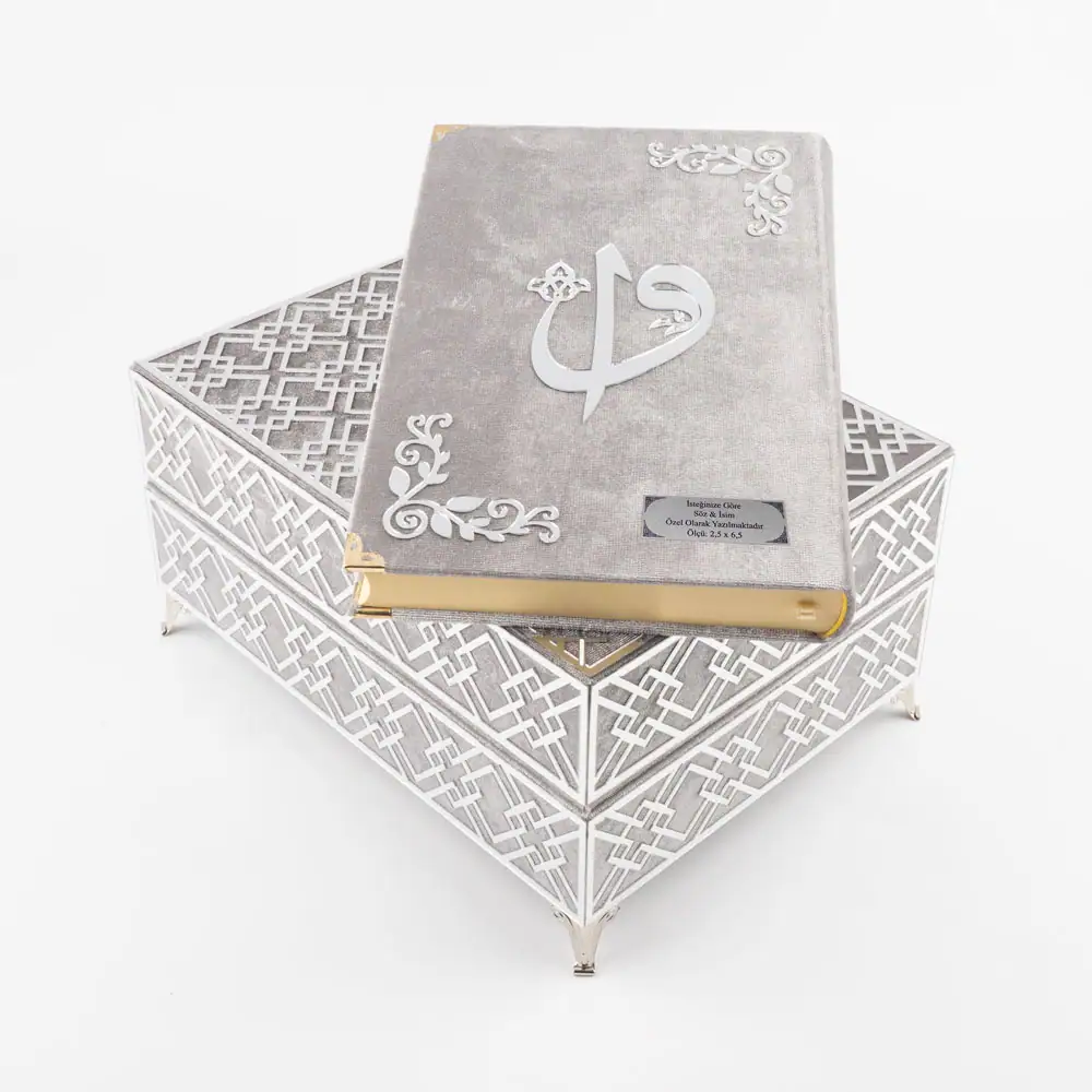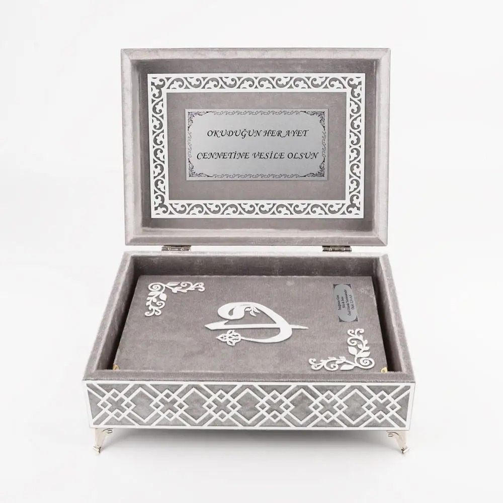 Hediyelik Kadife Kutu Kur’an-ı Kerim Yatay Model (Orta Boy, Elif Vav, Bordo)