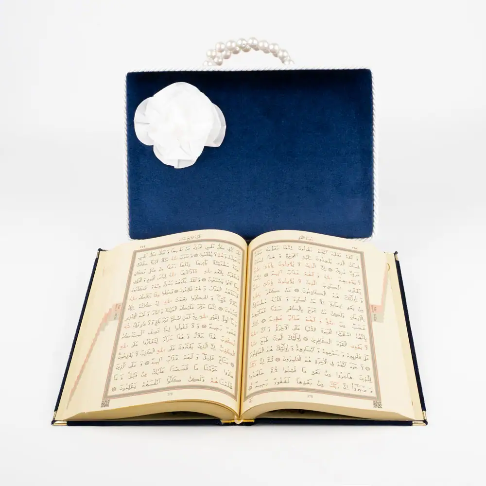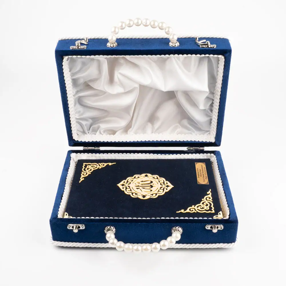 İnci Çantalı Çeyizlik Kuranı Kerim (Orta Boy, Lacivert)