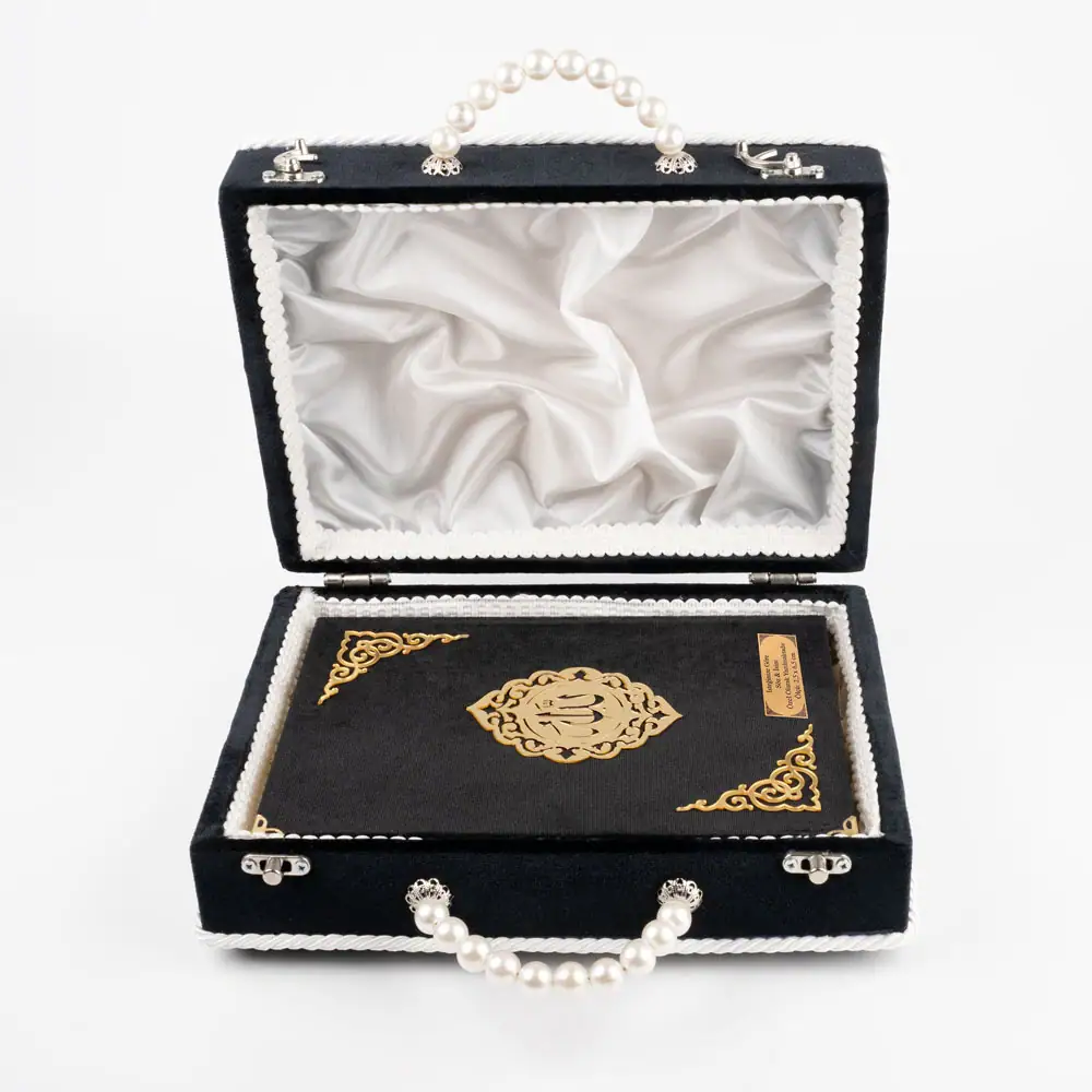 İnci Çantalı Çeyizlik Kuranı Kerim (Orta Boy, Siyah)