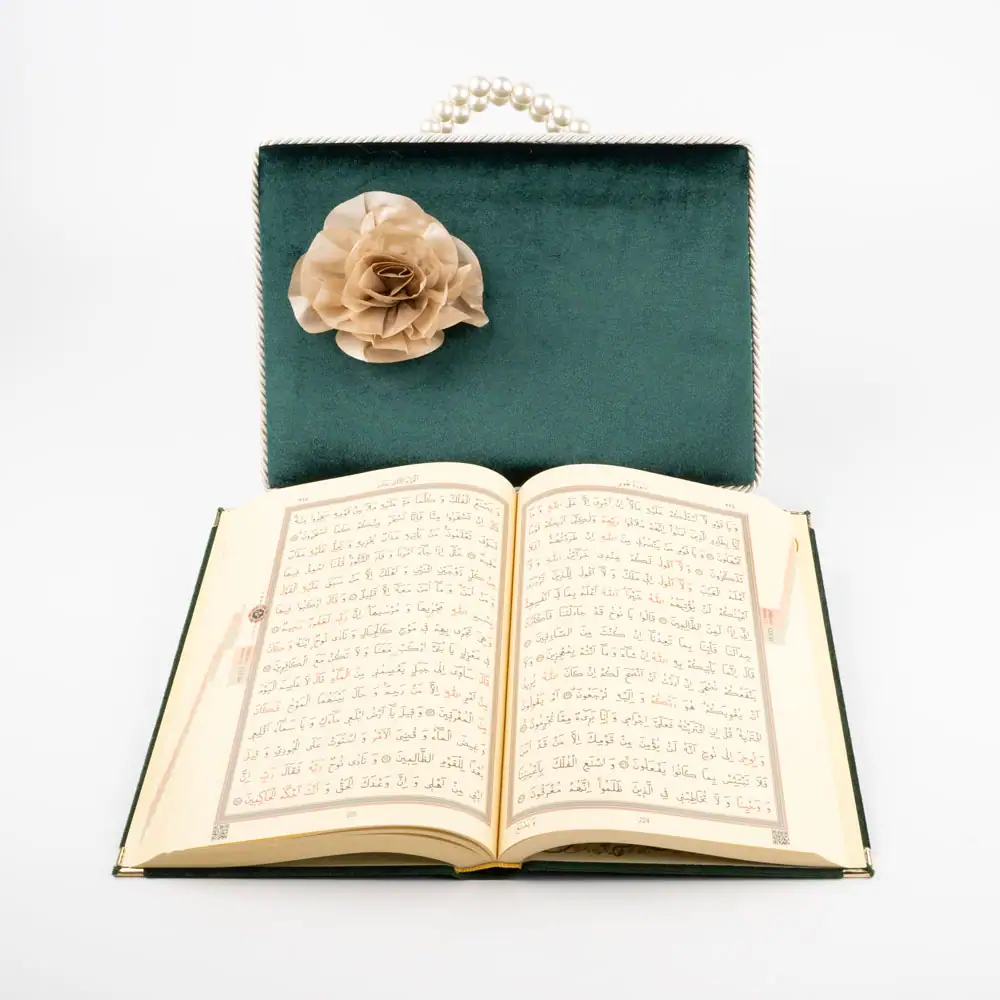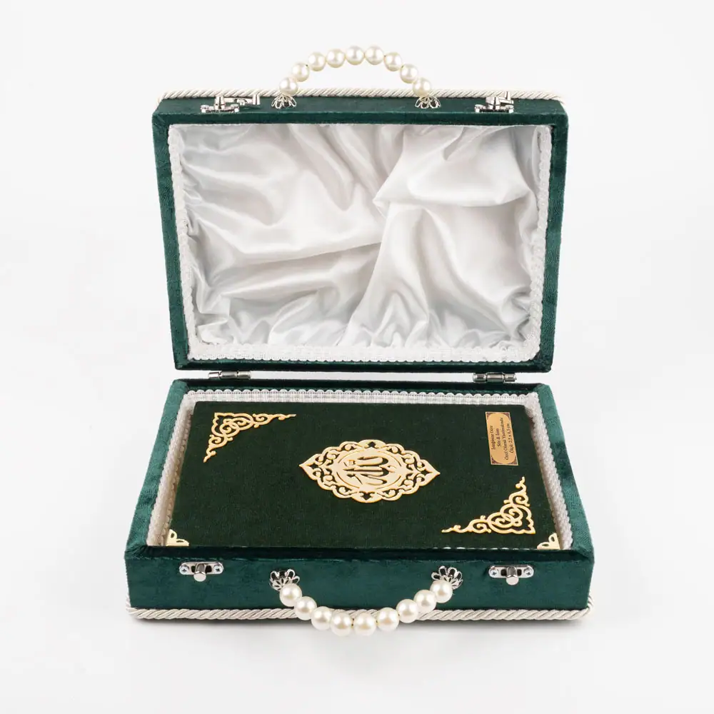 İnci Çantalı Çeyizlik Kuranı Kerim (Orta Boy, Yeşil)