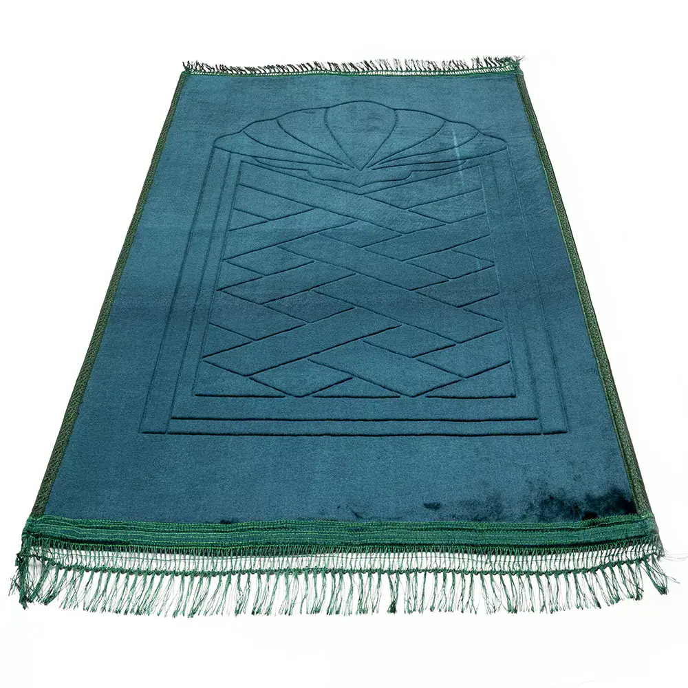 Peluş seccade, yumuşak dokusu ile ibadet sırasında daha konforlu bir kullanım sunmak isteyenler için özenle hazırlanmıştır. Sert zemin hissini azaltan yüzeyi sayesinde daha rahat bir deneyim sunar. Peluş kumaşın sağladığı yumuşak temas, kullanım sırasında fark edilir bir konfor sağlar. Yeşil tonu ile huzurlu ve sakin bir atmosfer sunarak bulunduğu ortama şık bir dokunuş kazandırır.