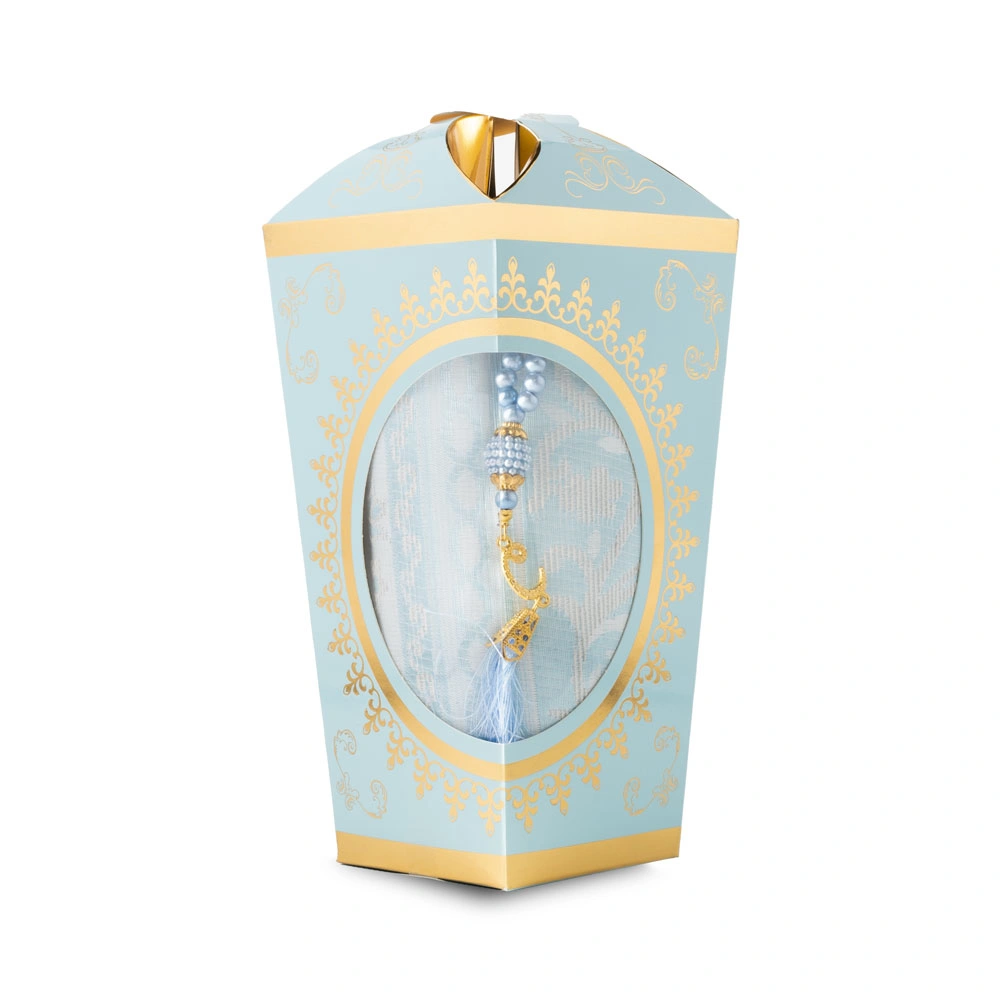 Ramazan Feneri Tesbih + Seccade Hediye Seti (Dik Asetat Kutu, Mavi)