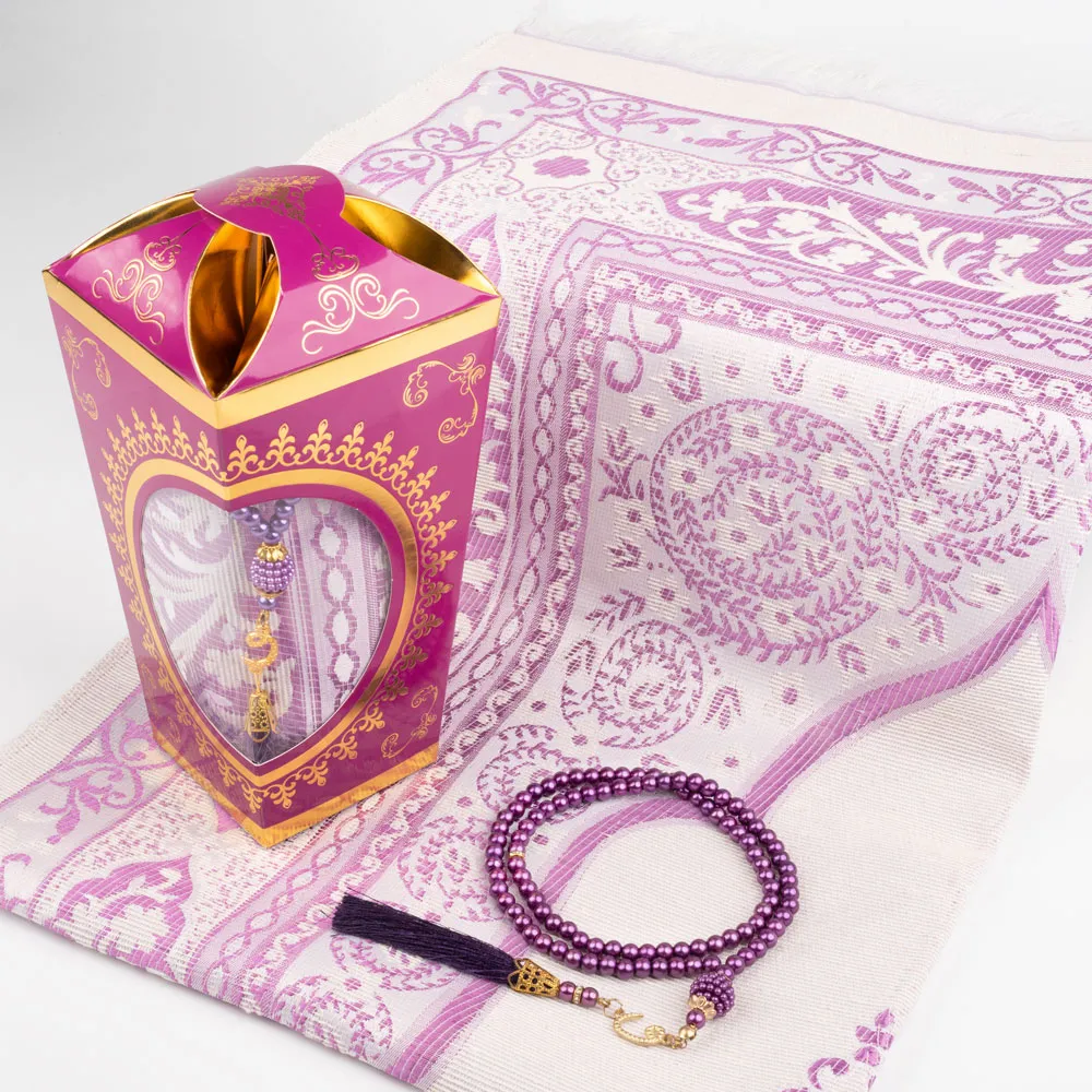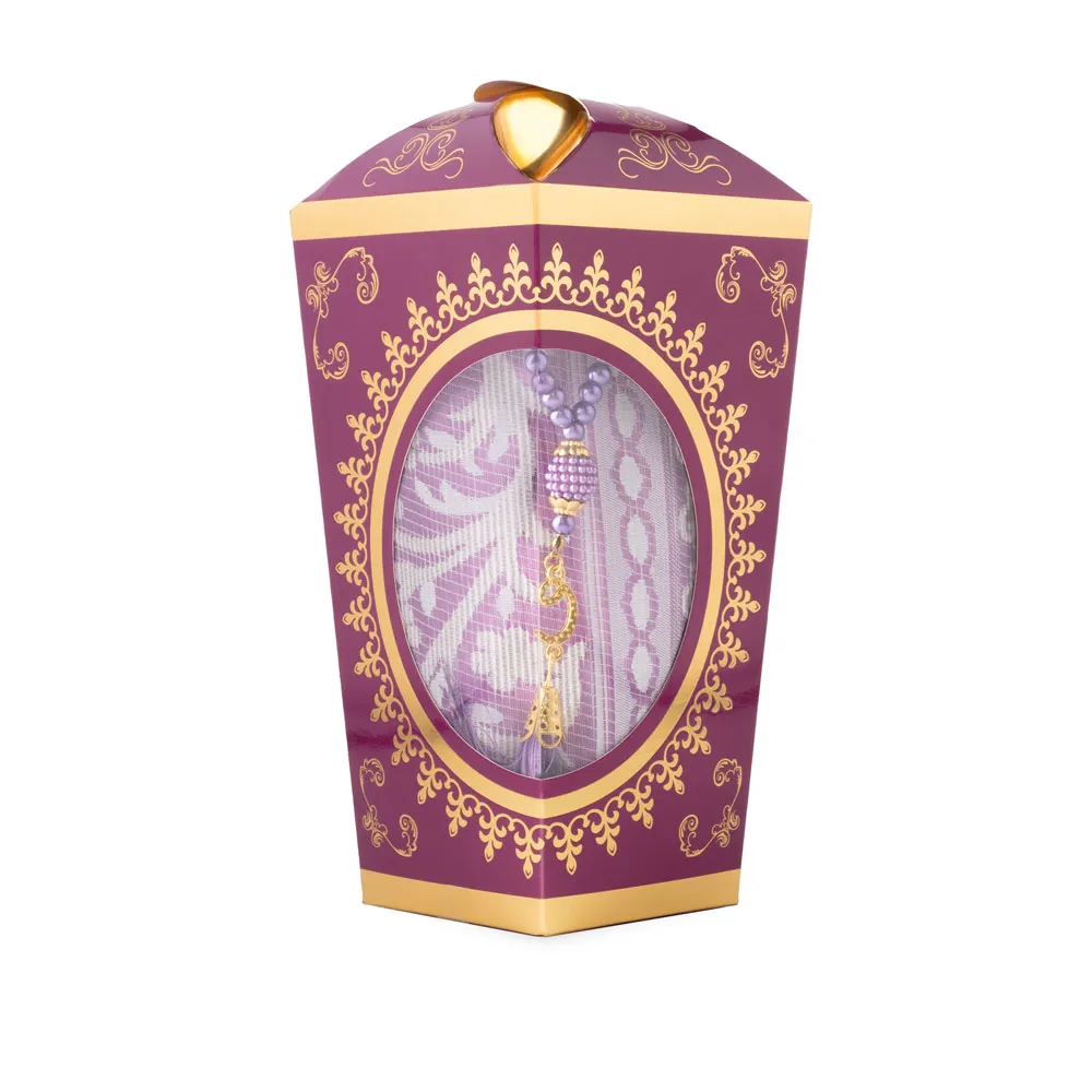 Ramazan Feneri Tesbih + Seccade Hediye Seti (Dik Asetat Kutu, Mor)
