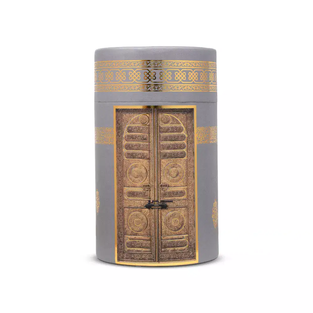 Seccade + Tesbih + Esans Hediye Seti (Kabe Desen, Gri)