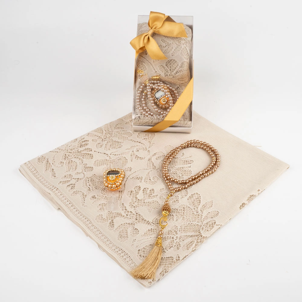 Tesbih + Dantelli Şal + Zikirmatik Hediye Seti (Gold)