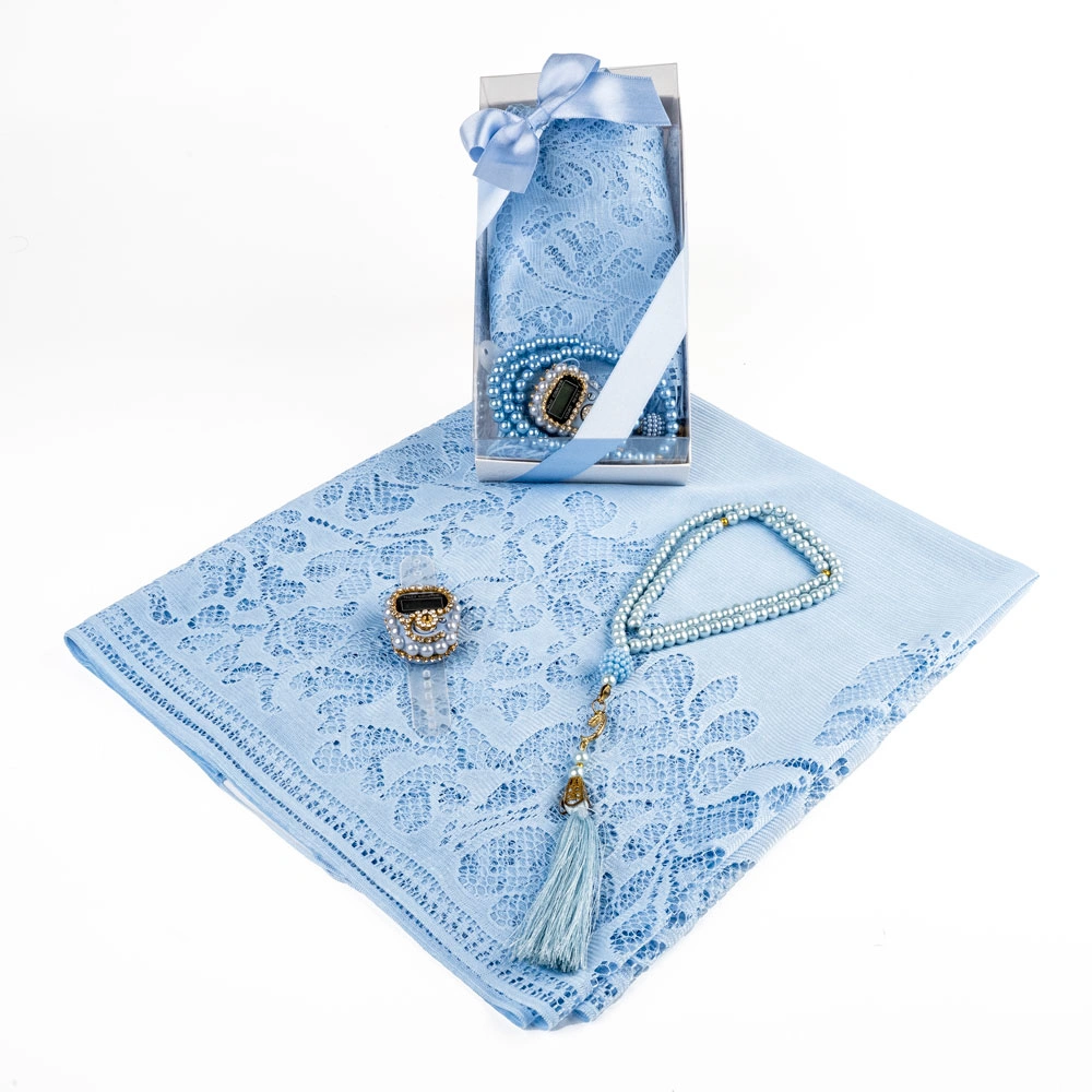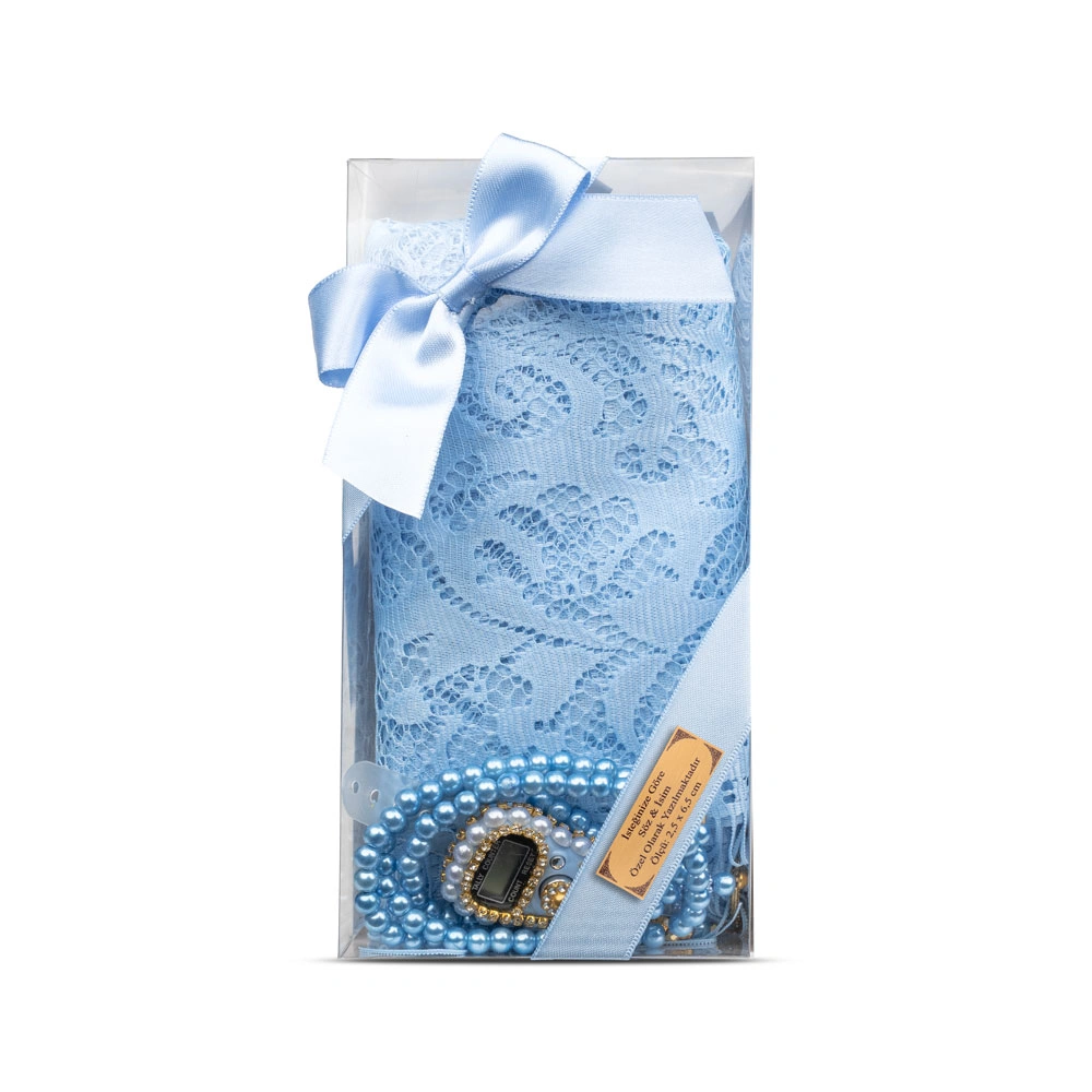 Tesbih + Dantelli Şal + Zikirmatik Hediye Seti (Mavi)