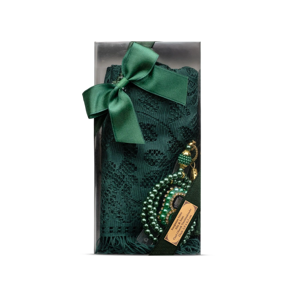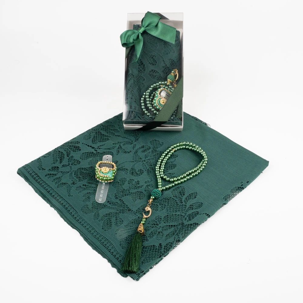 Tesbih + Dantelli Şal + Zikirmatik Hediye Seti (Yeşil)