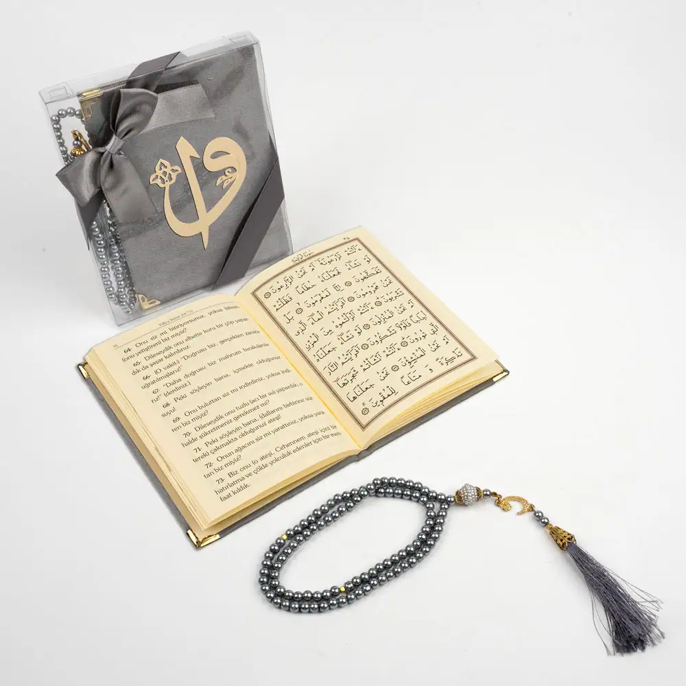Yasin + Tesbih Hediye Seti (Çanta Boy, Elif Vav, Gri)