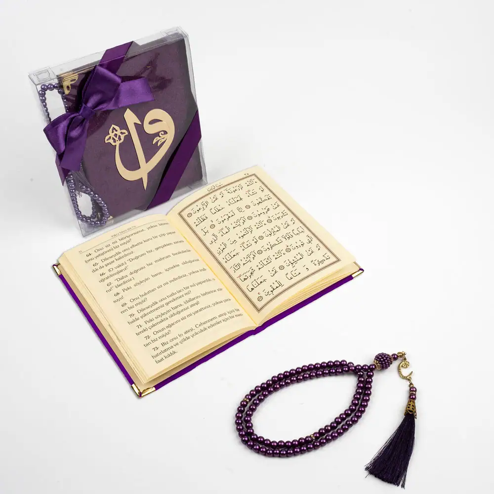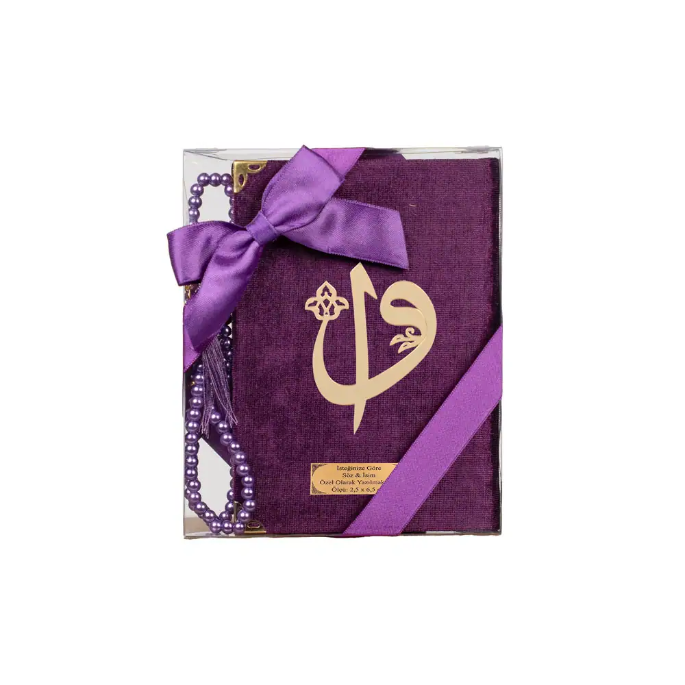 Yasinli İnci Tesbih Hediyelik Set (Çanta Boy, Elif Vav, Mor)