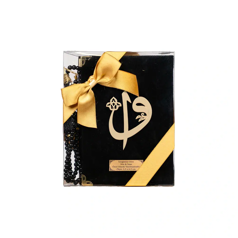 Yasinli İnci Tesbih Hediyelik Set (Çanta Boy, Elif Vav, Siyah)